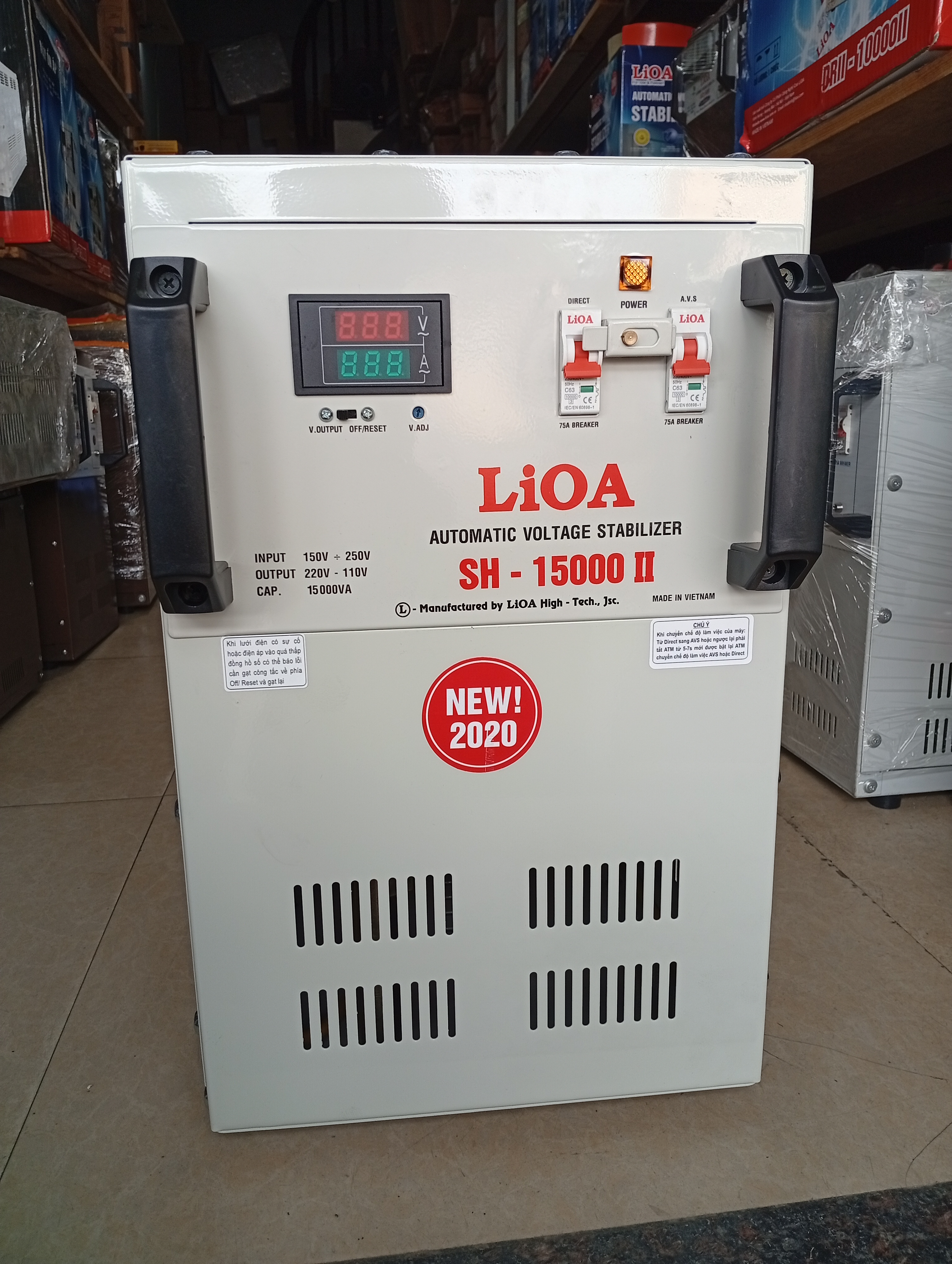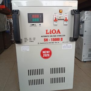 Ổn áp Lioa 15KVA – 15000W/15000VA. Model: SH-15000II đời mới nhất ✅ Lõi dây đồng 100% giúp bảo vệ quá áp, bảo vệ quá tải, đóng ngắt điện chủ động. ⭐️⭐️⭐️ thuộc loại ổn áp công suất lớn nên chủ yếu lắp đặt tại các hộ gia đình, văn phòng, cơ quan…vvv. có từ 04 đến 05 điều hòa 9BTU – 12BTU, có 02 – 04 bình nóng lạnh và các thiết bị điện dân dụng khác.