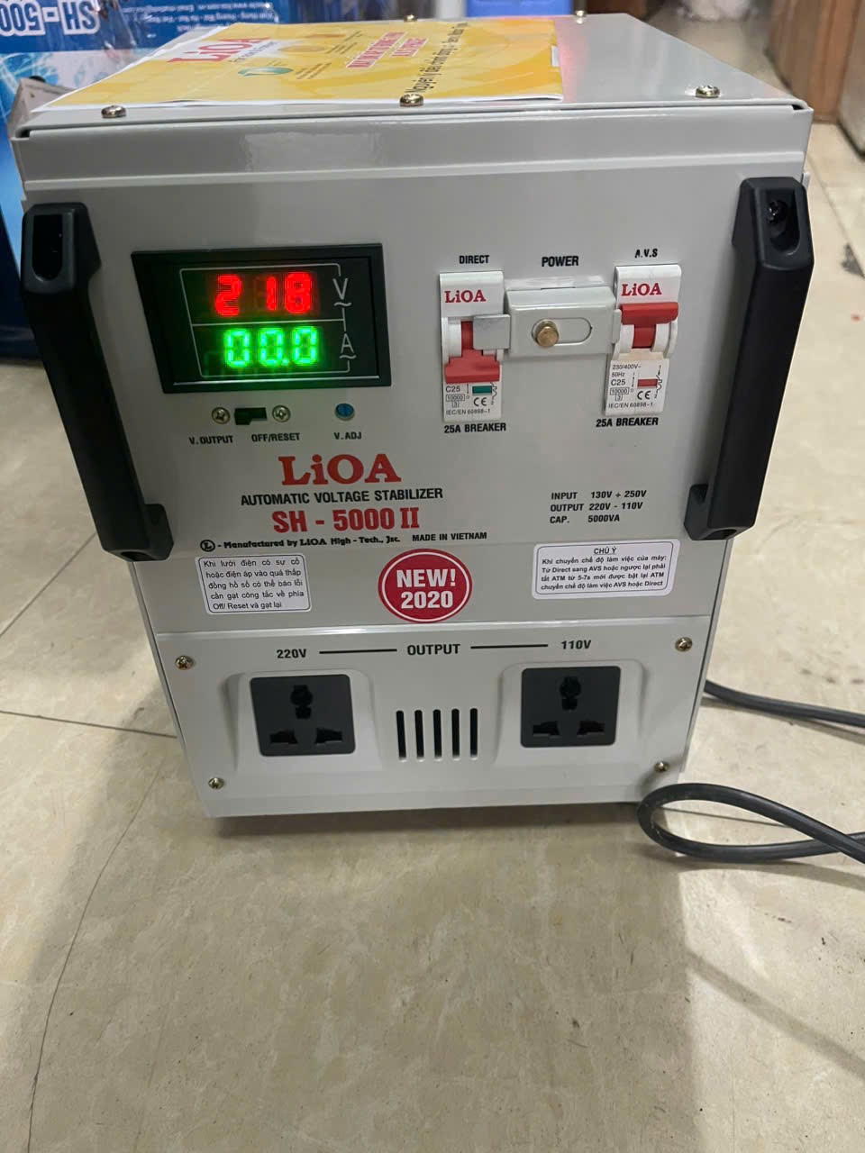 Ổn áp Lioa 5KVA – 5000W/5000VA. Model: SH-5000II đời mới nhất ✅ Lõi dây đồng 100% giúp bảo vệ quá áp, bảo vệ quá tải, đóng ngắt điện chủ động. ⭐️⭐️⭐️ Chuyên dùng cho máy vi tính, loa vi tính,điều hòa và các thiết bị điện trong gia đình công suất dưới 5000W. Máy chạy êm, tiêu hao điện thấp, giúp thiết bị điện chạy đủ công suất và phát huy tốt nhất tính năng sử dụng, tiết kiệm điện năng.